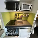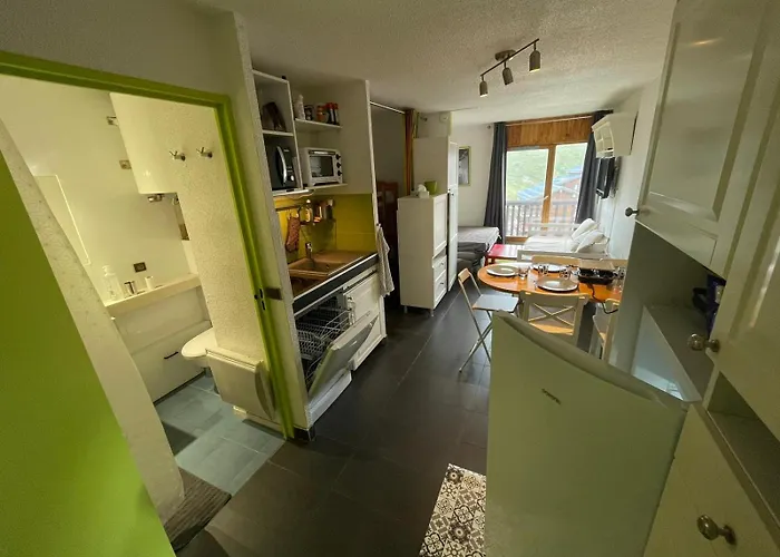 The 26 m^2 Appartement 5 Personnes Vue Cime Caron Ski In includes a fully furnished kitchen. Serving French dishes, La Cabane lies a short walk from the 1-bedroom apartment. Pionniers cable car station is 350 metres away.